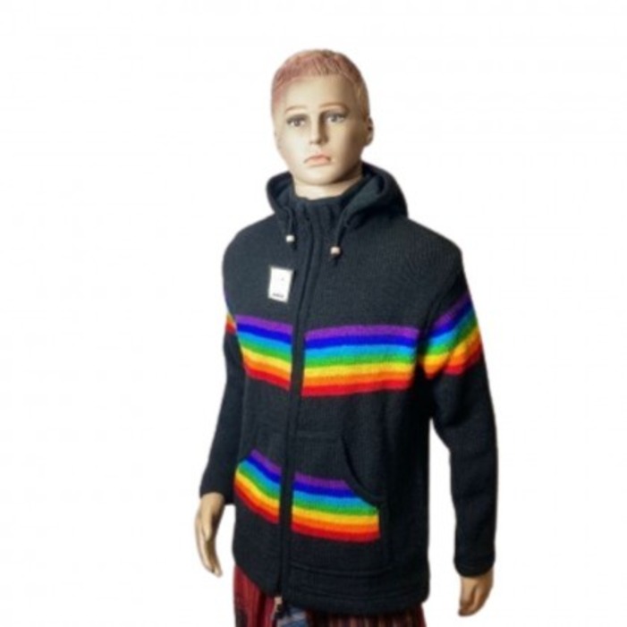 Rainbow with Black Yak Wool Outerwear-Vibrant Unisex Winter Jacket