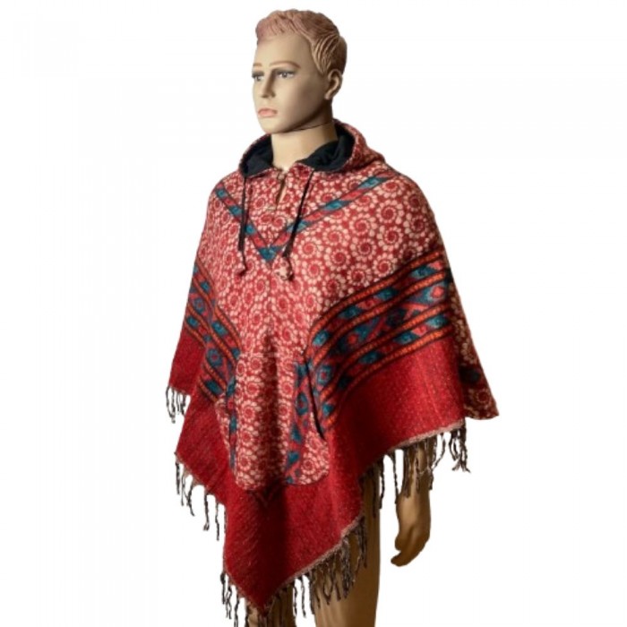 The poncho features a bold red base accented with blue and geometric ethnic patterns, a comfortable hood, and tassel fringes for a relaxed, free-spirited vibe. Perfect for chilly days, yoga sessions, meditation, or outdoor adventures — it’s both stylish and functional.