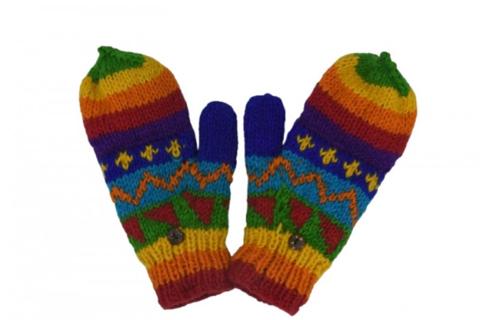 Add color and warmth to your winter wardrobe with our Handmade Rainbow Yak Wool Mittens, lovingly knitted by skilled artisans in Nepal. These mittens feature a cheerful rainbow color pattern with shades of red, orange, yellow, green, blue, and purple — perfect for anyone who loves bold, happy, and cozy winter accessories.