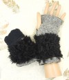 Add a touch of luxury to your winter essentials with these stylish convertible fingerless gloves hand-knitted from soft, marled heather gray wool. The standout feature is the dramatic jet black curly boucle yarn trim at the cuffs, creating a plush, faux-fur-like texture that brings sophistication and extra warmth to your wrists.