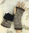 Embrace classic winter warmth with these charming convertible fingerless gloves hand-knitted from soft, natural wool in a rich heather brown shade. The timeless horizontal stripe pattern alternates with cream white rows, creating a textured, ribbed-like appearance that adds depth and a cozy, heritage-inspired look – reminiscent of traditional Scandinavian or rustic knitwear.