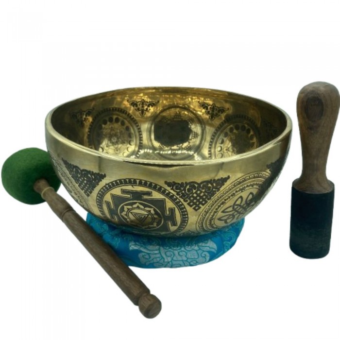 24cm Tibetan Jambati Singing Bowl -Tara and Yantra Etched 7 Metals Deep Resonance