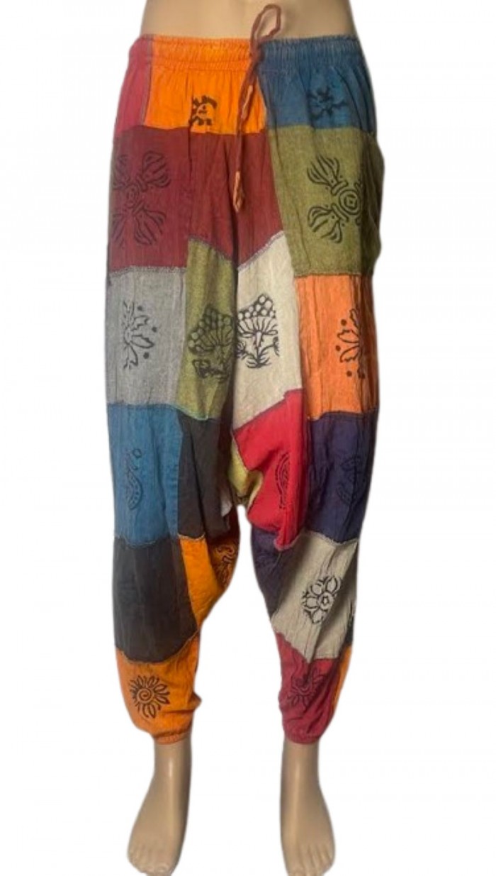 Handmade Multicolor Patchwork Cotton Yoga Pants from Nepal - Unisex Boho Trousers