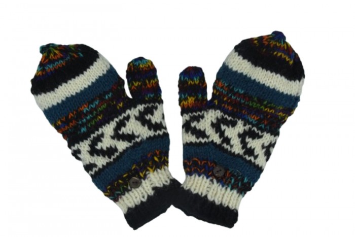 Keep your hands warm and cozy with these Handmade Yak Wool Winter Mittens, crafted from premium natural yak wool by skilled Nepalese artisans. These mittens combine deep blue, cream, grey, and colorful woven accents to create a unique and eye-catching winter accessory.