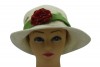 Elegant handmade felt hat in soft white with a green band and red rose accent. Crafted from 100% wool felt, it adds warmth and charm to any outfit.