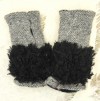 Gray Wool Convertible Fingerless Gloves with Black Fur Trim