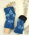 Blue Wool Convertible Fingerless Gloves with Floral Embroidery